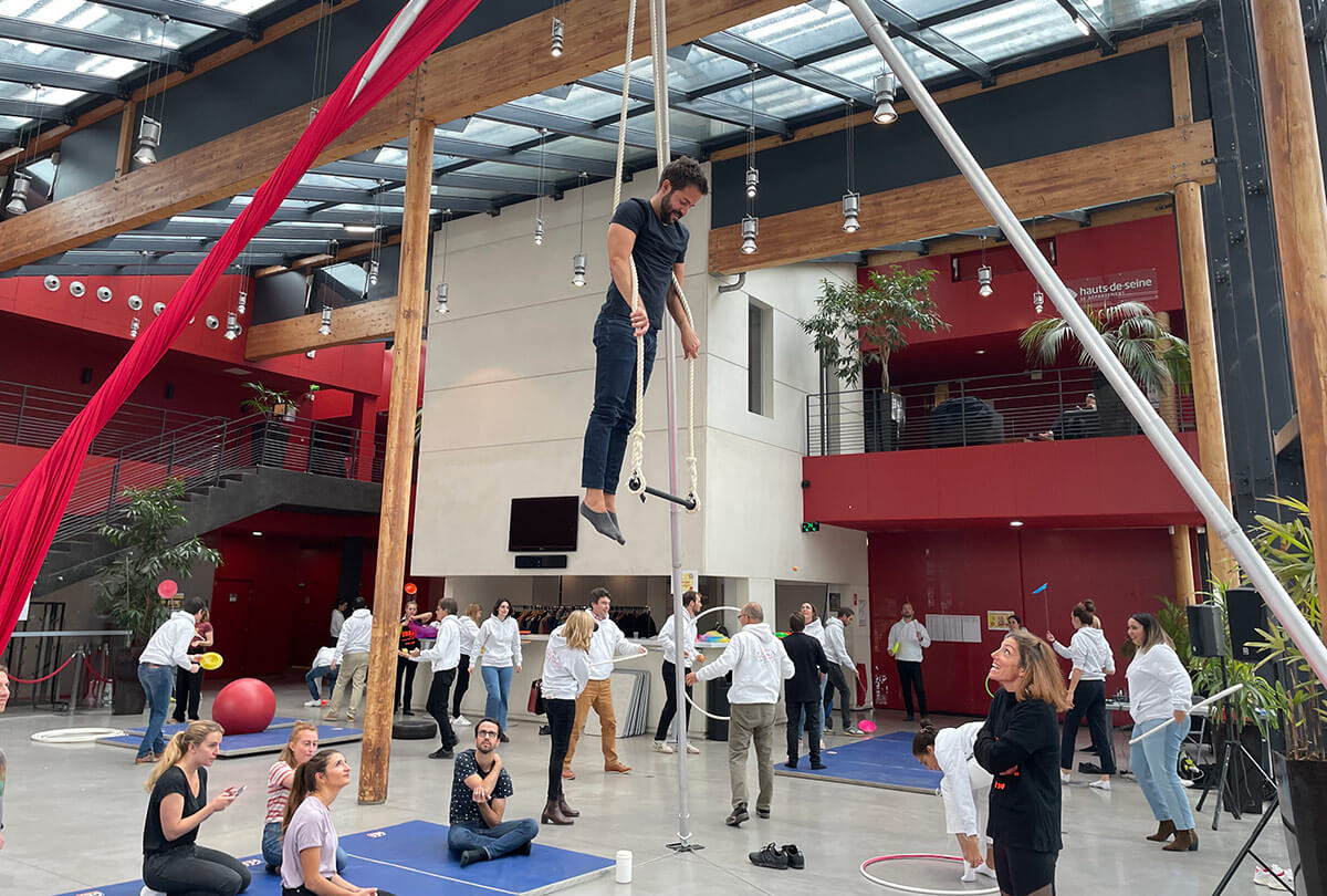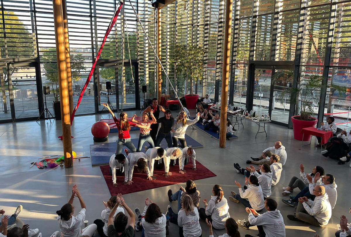 Des ateliers collaboratifs autour du cirque ou de la magie, favorisant la confiance, la communication et l’intelligence collective. - Temps forts internes